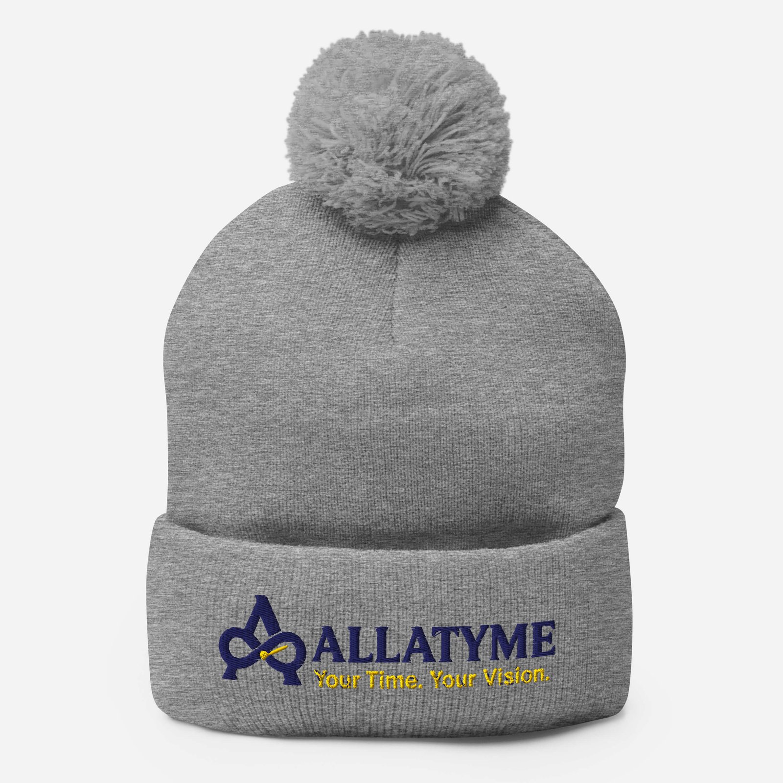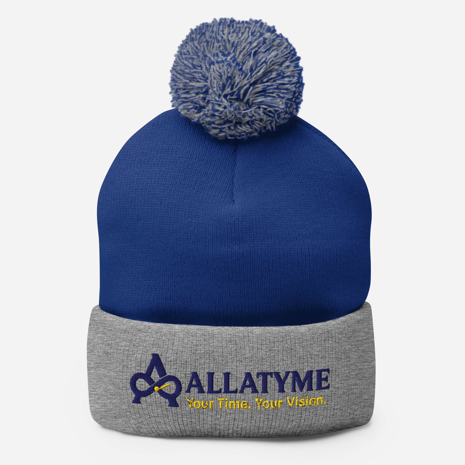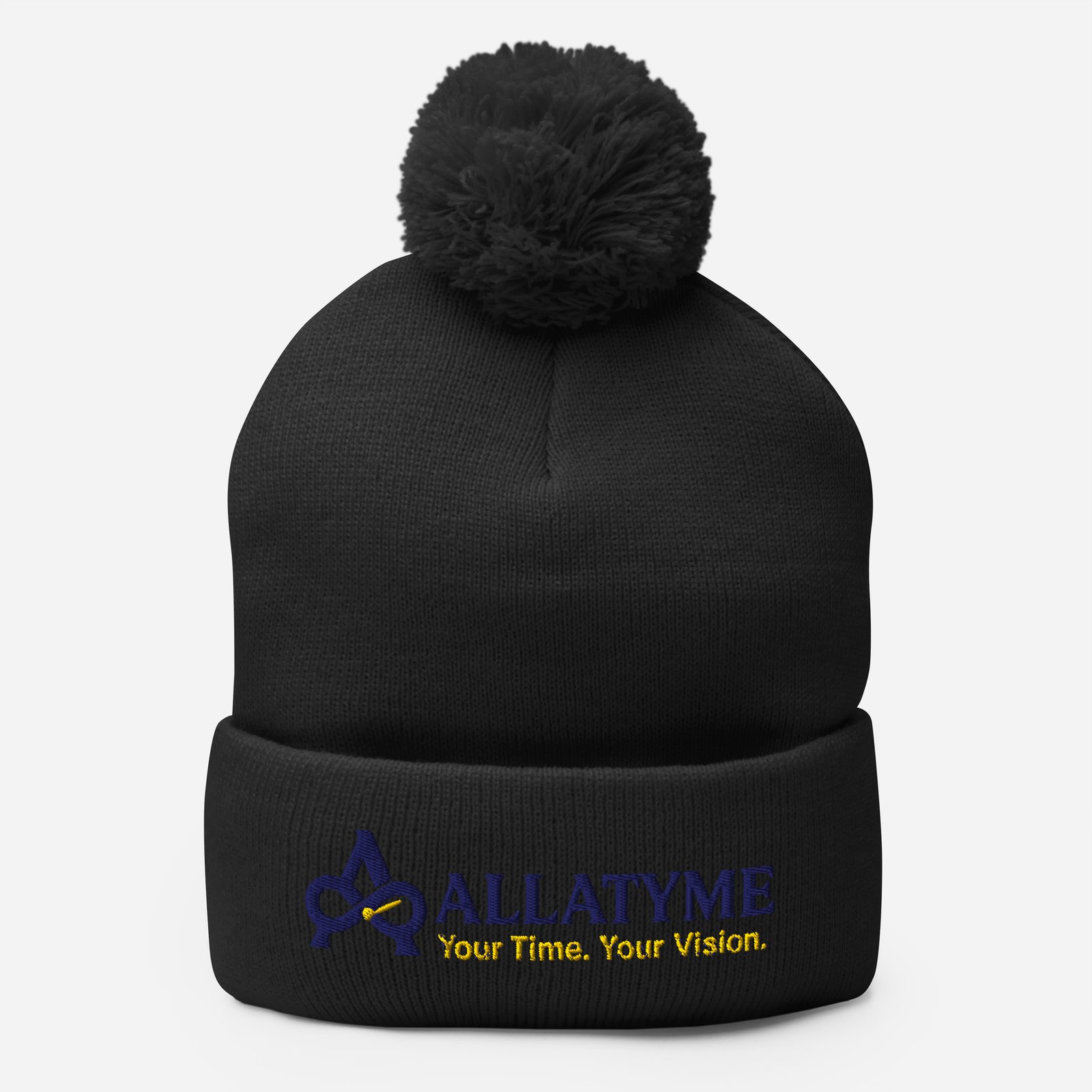 Allatyme: Your Time. Your Vision. – Pom-Pom Beanie – Navy & Yellow